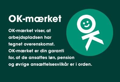 OK-mærket viser, at arbejdspladsen har tegnet overenskomst, og OK-mærket er garanti for, at de ansattes løn, pension og øvrige ansættelsesvilkår er i orden.